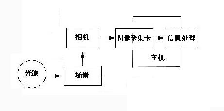 在整個過程中,被測對象的信息反映為圖像信息,進而經(jīng)過分析,從中得到特征描述信息,最后根據(jù)獲得的特征進行判斷和動作。最典型的機器視覺系統(tǒng)一般包括: 光源、光學成像系統(tǒng)、相機、圖像采集卡、圖像處理硬件平臺、圖像和視覺信息處理軟件、通信模塊。