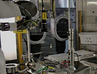 其基本概念是提供一種能夠在兩個(gè)機(jī)器人的操作范圍內(nèi)定位一種特別容器的即用“穴”的系統(tǒng)。尚菱視界的 In-Sight® Micro 視覺系統(tǒng)被用于精確定位各個(gè)容器和限位器,并在處理前為機(jī)器人提供這些位置。此方法允許通過加載新機(jī)器人程序、更換產(chǎn)品載板和指示機(jī)器人更換手臂末端工具而從一種容器類型或尺寸快速轉(zhuǎn)換到另一種。所有工藝中的接觸部件均使用一次性材料,這樣也縮短了更換時(shí)間并消除了交叉污染的風(fēng)險(xiǎn)。