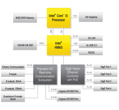 VC5 采用堅固耐用的無風扇式設計,無任何活動元件,因而具有極強的抗振性,適用于塵土多的工業(yè)環(huán)境。VC5 可從相機或 3D 位移傳感器進行高速平行圖像采集,并且配備了一系列離散型 I/O、編碼器輸入、確定性精密 I/O 子系統(tǒng),以及常用工廠協(xié)議的網(wǎng)絡功能。