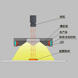 平面無(wú)影光采用獨(dú)特的照射結(jié)構(gòu),從LED發(fā)出的光均勻地?cái)U(kuò)散照射,同時(shí)采用柔性線路板以0度照射角度固定,經(jīng)折射后低角度照射在被測(cè)物體上,以強(qiáng)化表面特征(如激光浮印或蝕刻標(biāo)識(shí))或提高表面缺陷的對(duì)比度。