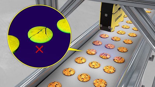 通過(guò)測(cè)量長(zhǎng)度、寬度和高度驗(yàn)證餅干的均勻性。以及,檢測(cè)餅干的缺陷,例如破碎或裂開。